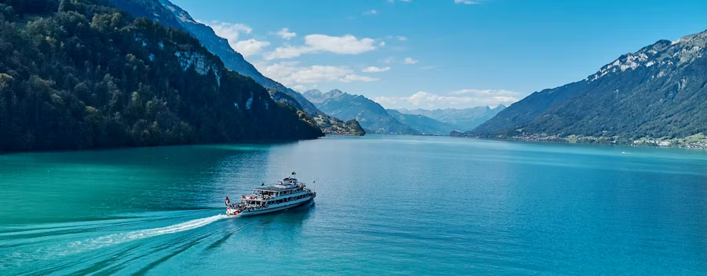 Glide through the heart of the peaks aboard the iconic GoldenPass Express and across the deep azure waters of Lake Brienz.